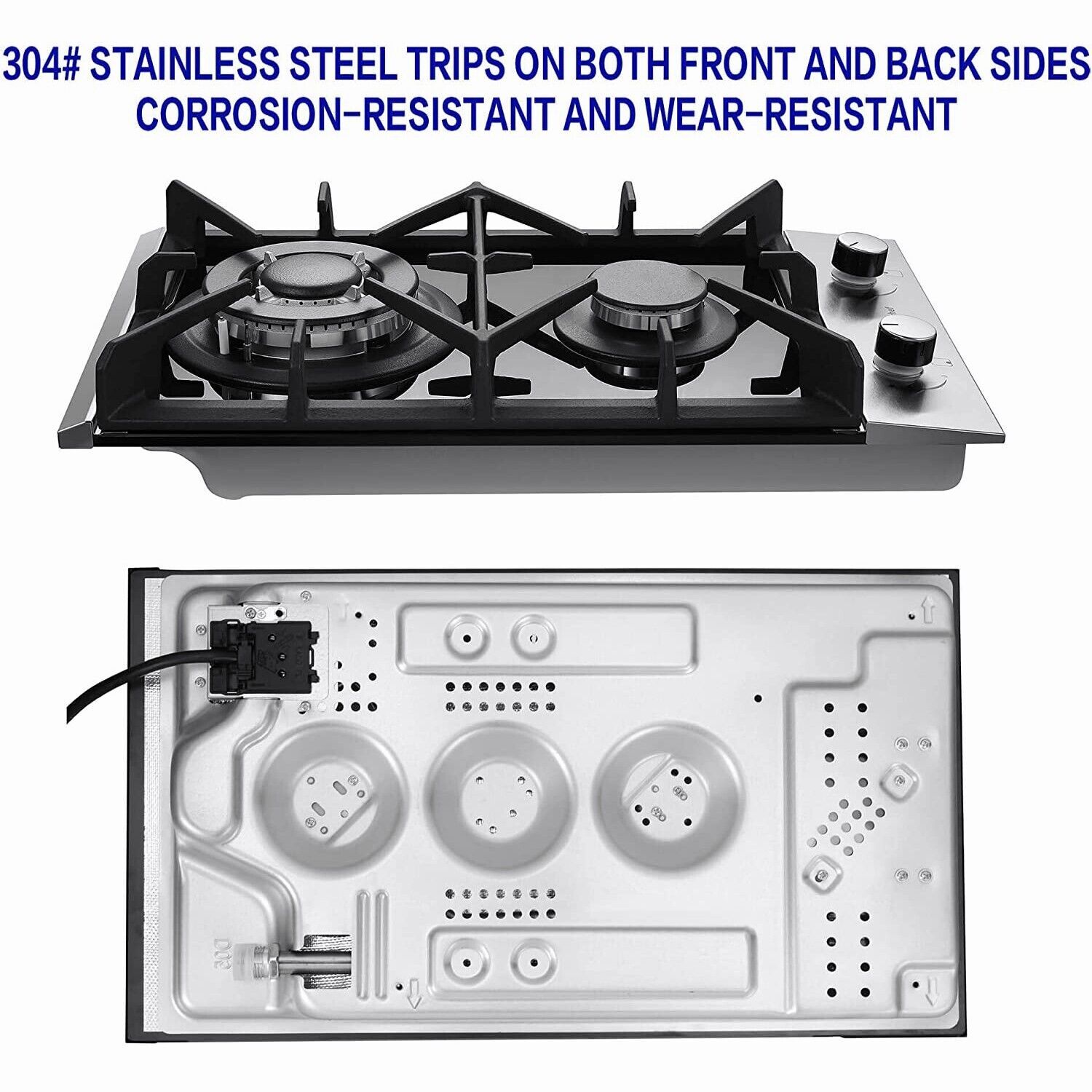 Eascookchef Gas Cooktop 12 inch, 8mm Tempered Glass in Black
