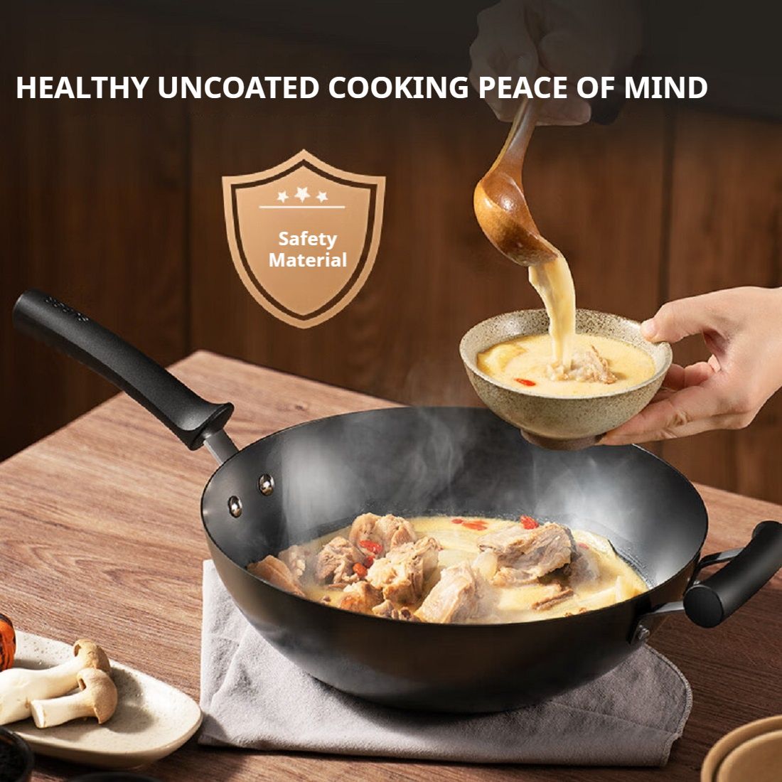 Precision Iron Uncoated Stainless Steel 32cm Wok with Standing Lid for Gas