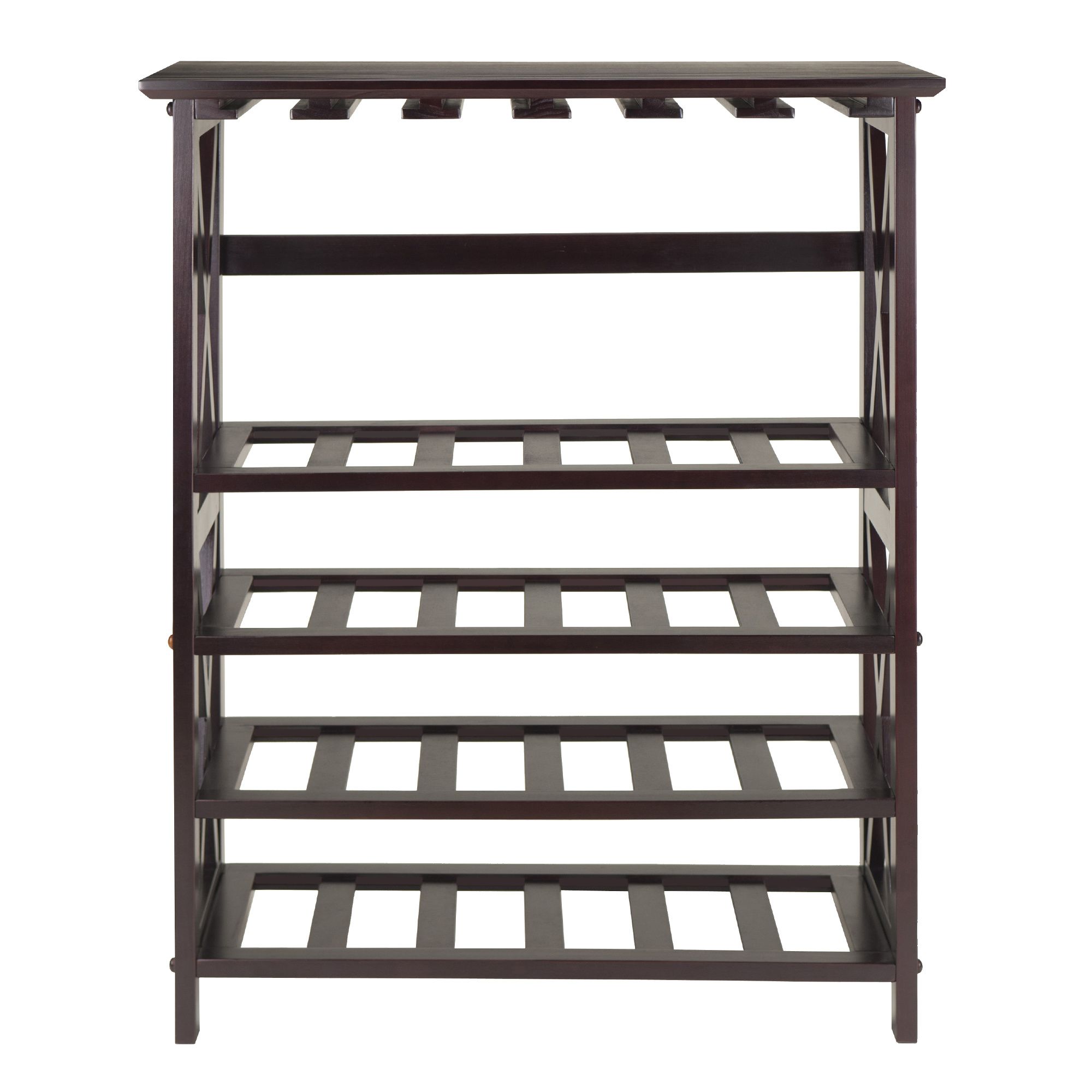 Rio wine Rack and Bar adds dining space and storage to your kitchen or dining room. This sturdy win rack able to accommodate up to 24 bottles and wine glasses. The simple style blends with X legs is great for kitchen or game room. Measures 28.74"W x 13.39"D x 35.67"H in Espresso Finish. Made from combination of solid and composite wood. Assembly Required.Overall size is 28.74"W x 13.39"D x 35.67"H. Top can use as serving station.Glass Rack holds up to 24 Champagne Glasses. Wine Rack holds 24 bottles with 5.31" shelf clearance.Made from combination of solid and composite wood in espresso finish. Assembly Required.nullnullnull This product meets the oversized requirement per UPS/FedEx. The shipping weight reflected is the dimensional weight. This product also meets the large package requirement per UPS/FedEx. The estimated shipping cost will include this fee. Large package is $70.00; applied when length plus girth [(2 x width) + (2 x height)] combined exceeds 130 inches. Additional Handling charge of $10.50 applied where a package's longest side exceeds 48 inches in length; the second longest side exceeds 30 inches in length; or total weight is greater than 70 lbs.This product meets the oversized requirement per UPS/FedEx. The shipping weight reflected is the dimensional weight. This product also meets the large package requirement per UPS/FedEx. The estimated shipping cost will include this fee. Large package is $70.00; applied when length plus girth [(2 x width) + (2 x height)] combined exceeds 130 inches. Additional Handling charge of $10.50 applied where a package's longest side exceeds 48 inches in length; the second longest side exceeds 30 inches in length; or total weight is greater than 70 lbs.