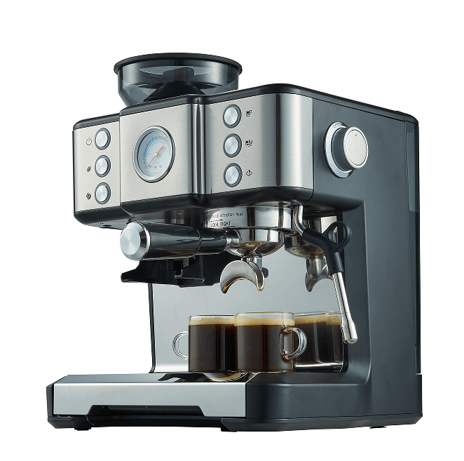 SKU: PSCM7000 Coffee Grinder. 15Bar, French Drip / Latte and other Italy espresso extraction, 1 cup/2 cup mechanical button + meter number, 2300W, steam type, powder hammer 58mm, 30 levels of grind setting