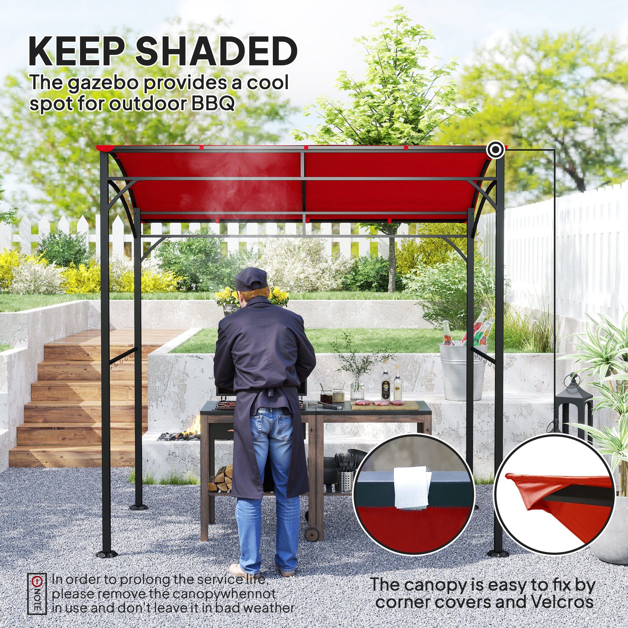 • Stylish Utility: The BBQ gazebo is the great companion for your outdoor grill or outdoor kitchen. The unique curved canopy design adds visual appeal to your outdoor cooking space.