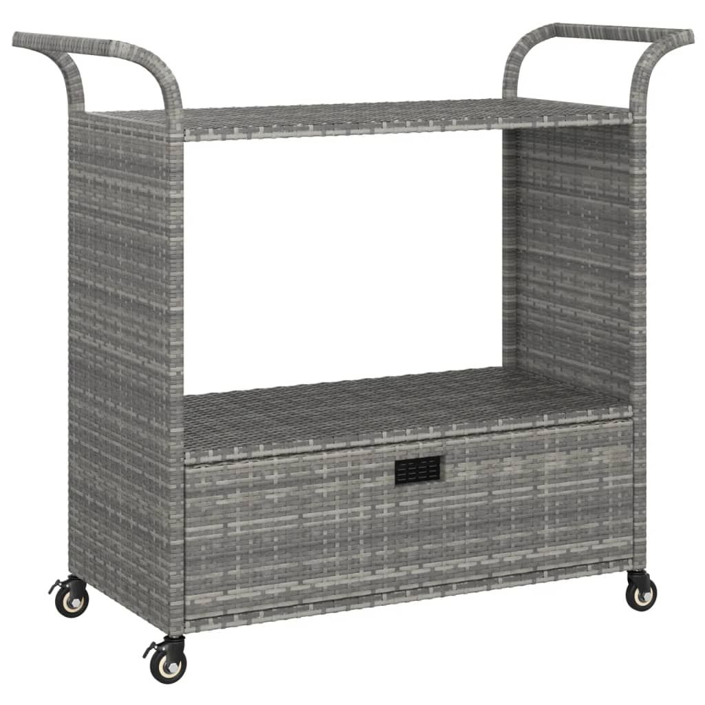 Home > Bar Cart with Drawer Gray 39.4"x17.7"x38.2" Poly Rattan