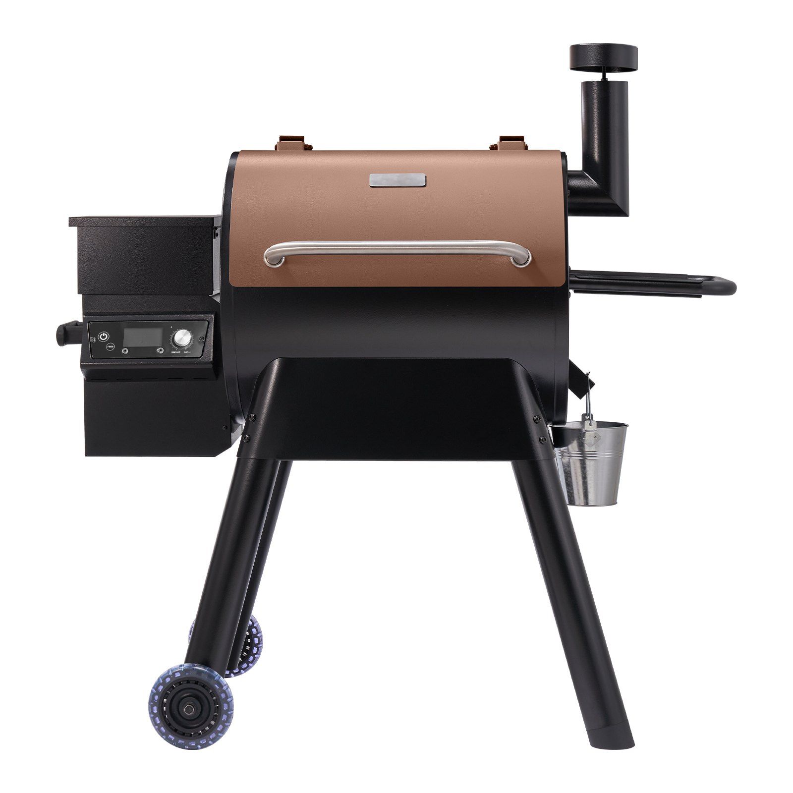 The main body of the wood pellet grill is made of carbon steel resistant to corrosion and built to last. Equipped with movable wheels, you can easily move the portable smoker grill over any terrain. Includes a meat probe accessory to make smoking and grilling effortless.