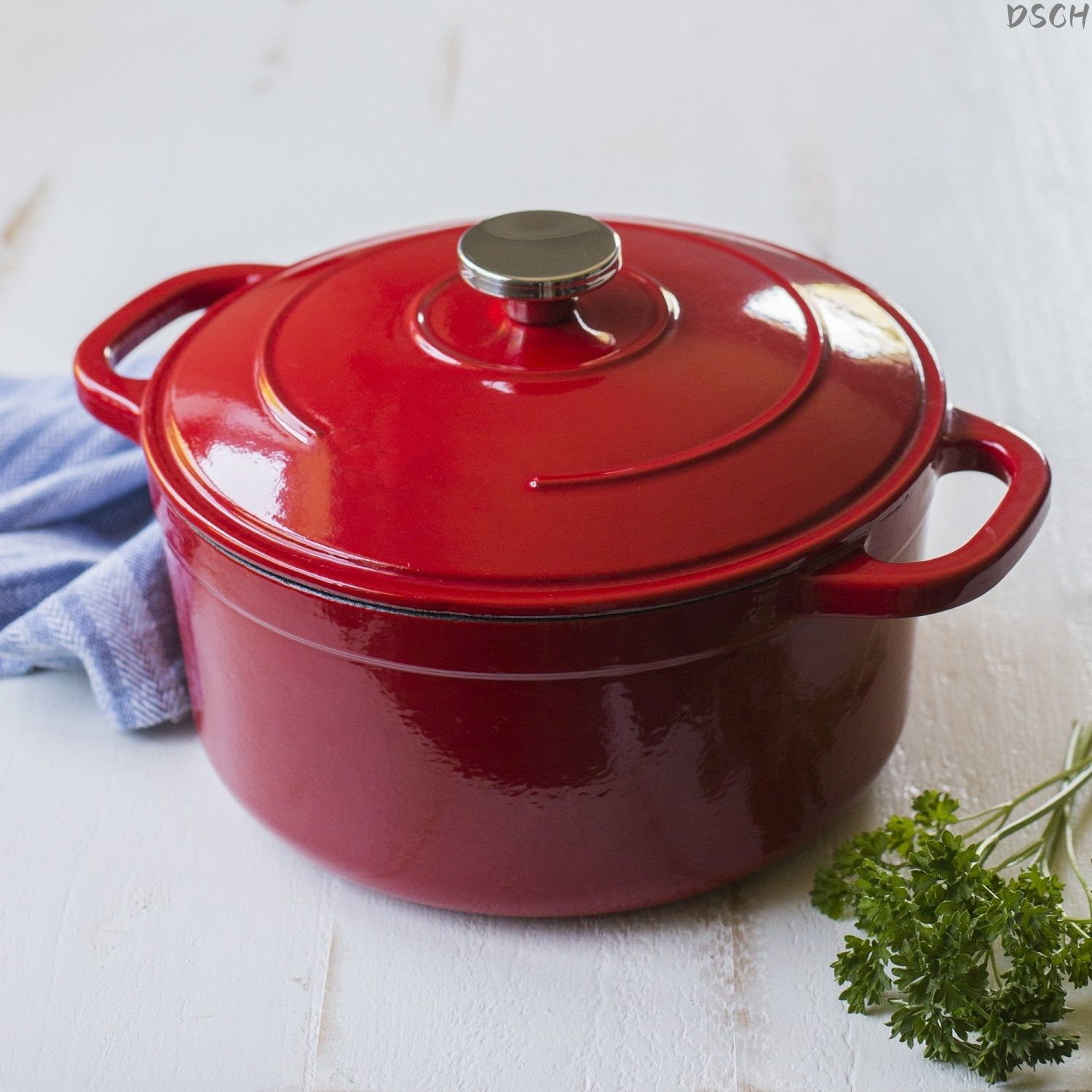 1.6.5 quart enameled cast iron dutch oven in blue, red, black etc.