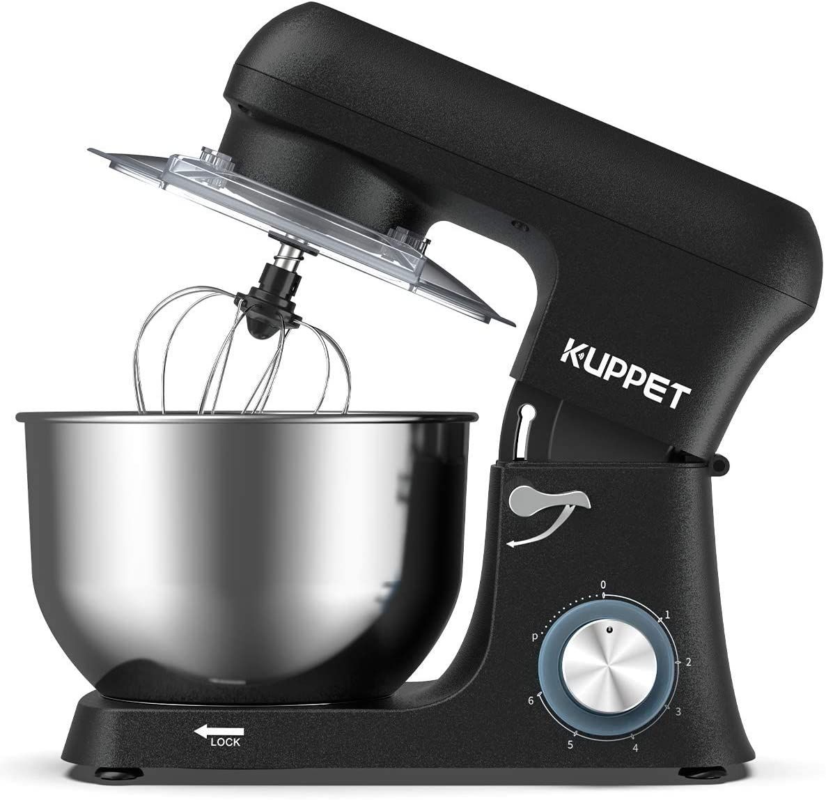 New model of stand mixer: In this mixer, we update the body material, using die-cast metal construction, which can be more stable and not easy to move. 700W high performance pure copper motor and 6+0+P optimized speeds. Noise ≤75dB. Full metal gears for driving mechanism. Tilt-back head allows easy access to the mixing bowl. Included Components: 6.5QT Stainless steel bowl, Wire Whip, Dough Hook, Flat Beater and Splash Guard. KUPPET electric mixer is ETL listed. 2-Year Warranty.